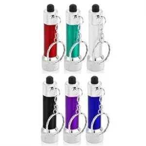 The key chain features 3 LED bulb lights with a push button. LR44 button cell batteries included.