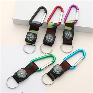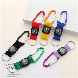 Handy Carabiner made of anodized aluminum with metal split key ring. Featuring woven nylon strap with compass inset. Attractive and eye-catching item. Durable construction with refined edges. Recommended for job and career fairs and recruitment agencies.