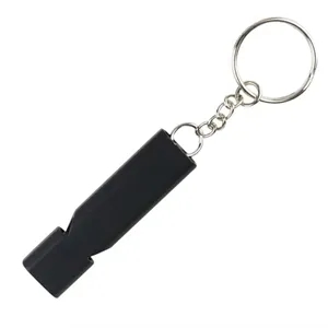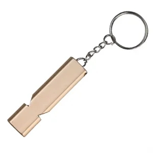 This whistle keychain is made of high quality aluminum metal.